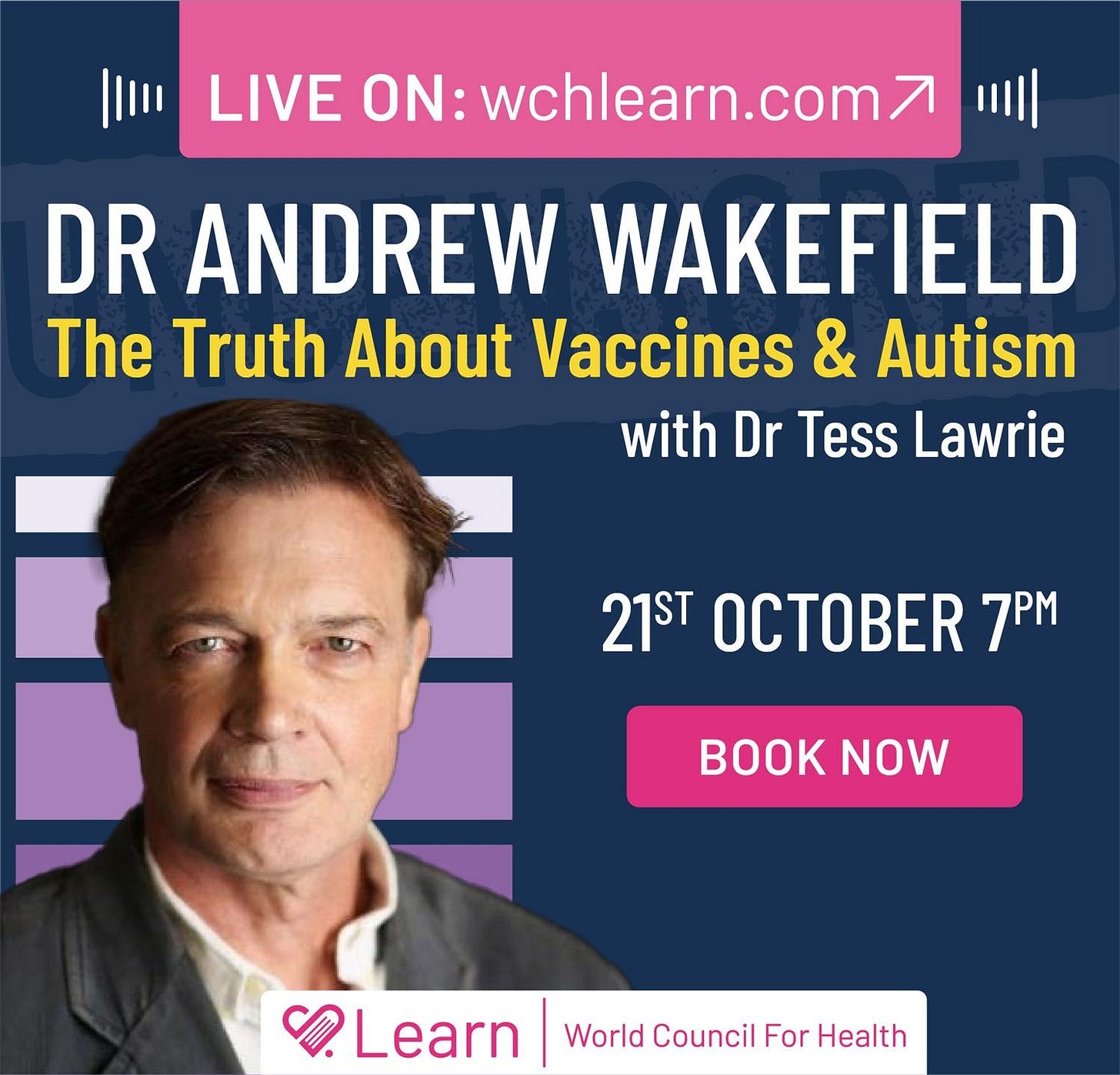 Last call for livestream tickets for Dr Andrew Wakefield in conversation with Dr Tess Lawrie
