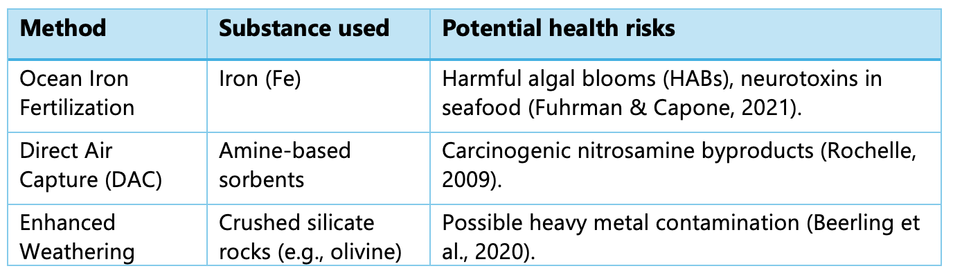 While SRM reflects sunlight, CDR aims to remove CO₂ from the atmosphere. Some methods involve chemical agents with their own risks:
