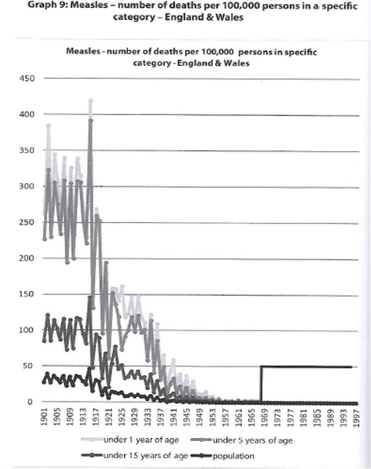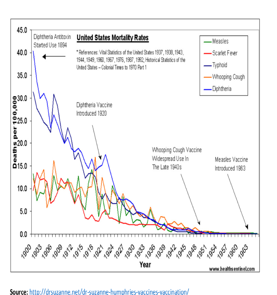 Historical data shows that the death rate from measles had already declined by 98% before the vaccine was introduced1.