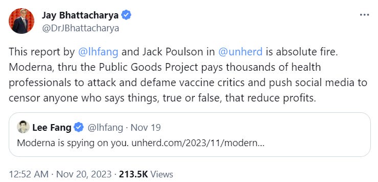 Lee and Paulson reported that Moderna was unconcerned with the truth of any of the claims made in the posts it flagged, only with their effects.