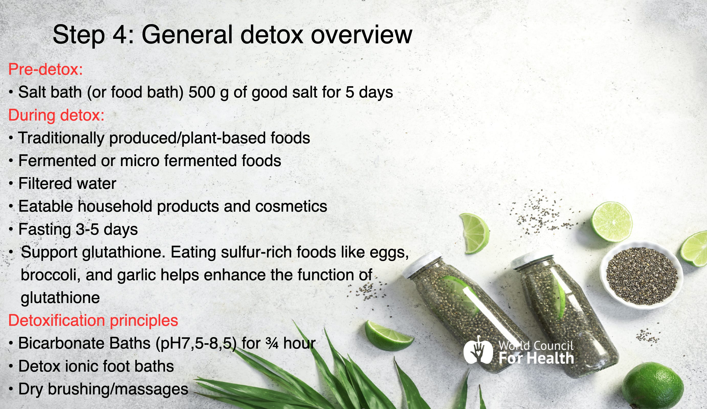 The World Council for Health’s (WCH’s) Better Way Today session on 13 May 2024 was a bumper session on Detoxification for Health and Well-being. Hosted by Dr Tess Lawrie and WCH Health and Science Committee lead, Christophe Plothe DO, with support from WCH’s Health Coach Linda Rae, it drew on the detox wisdom of representatives from eight WCH Country Councils.