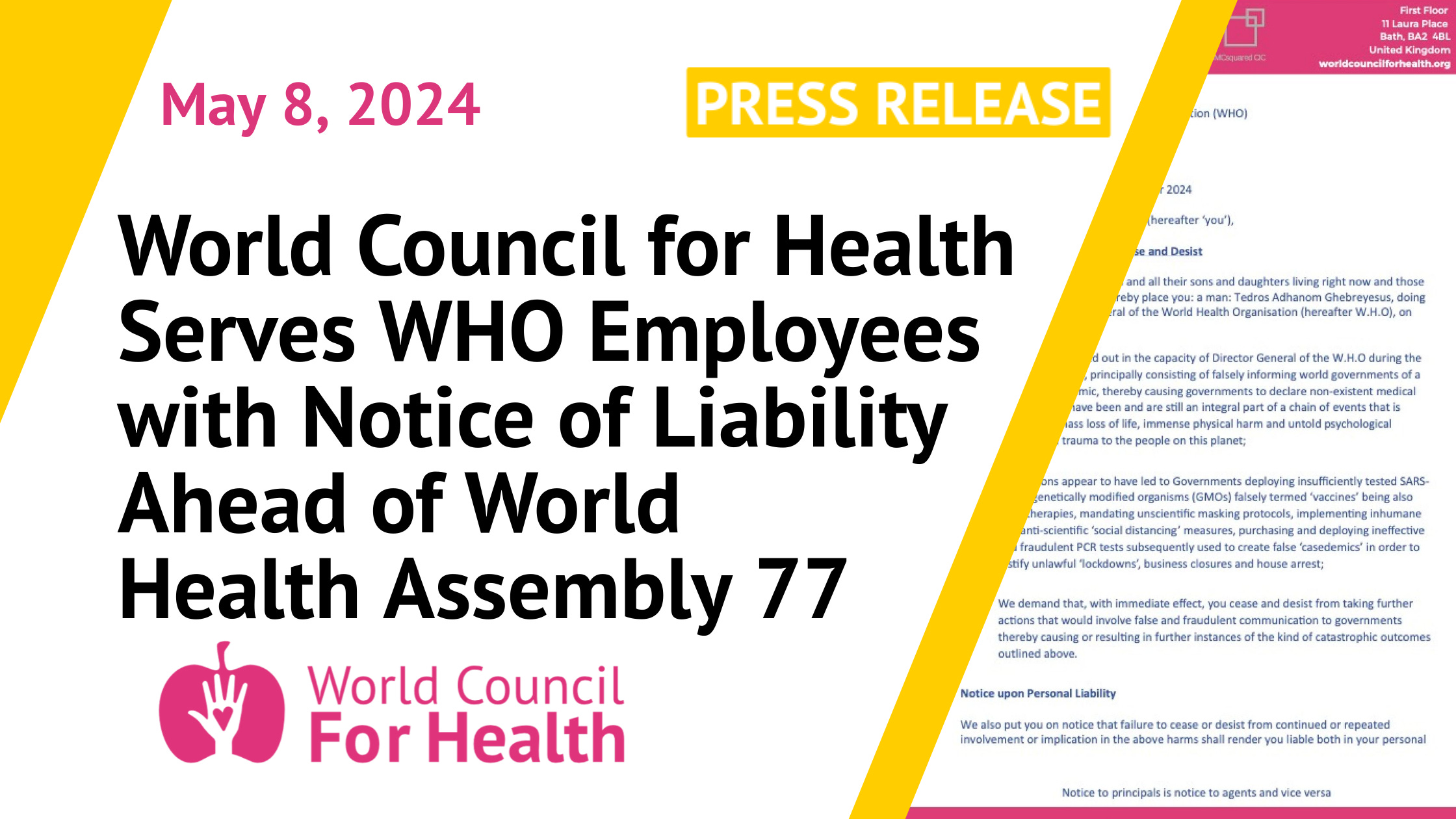 “As courts appear to be compromised by bias or financial considerations, World Council for Health decided to use a different approach by reminding these individuals that they are accountable to us as human beings – men and women – and not just in their corporate capacity. This is an important step in transparency and accountability. Now, neither the WHO nor its employees can claim ignorance, especially as evidence of immeasurable harms emerges daily”.