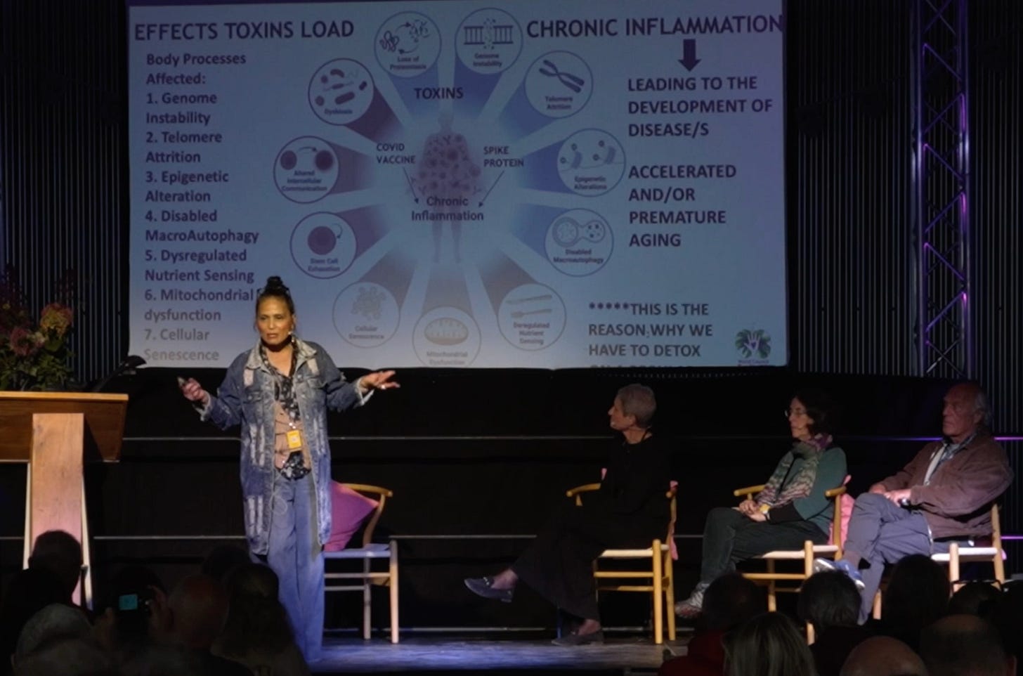 One after the other they stood in front of the audience and delivered the same, uncomfortable truth: that whether you received the Covid jab or not, you are likely walking around with spike protein in your body. Shedding through the breath, the skin, bodily fluids, means that this toxic protein is now almost ubiquitous.