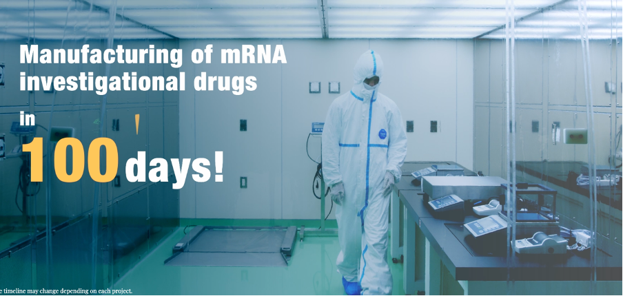 With the endorsement of the World Health Organization of novel 100-day GMO ‘vaccine’ technology, the production of self-replicating ‘vaccine’ products has been enabled by Arcalis in Fukushima, Japan. The company website proudly announces that it is manufacturing mRNA drugs in 100 days. See below: